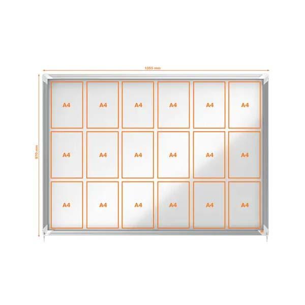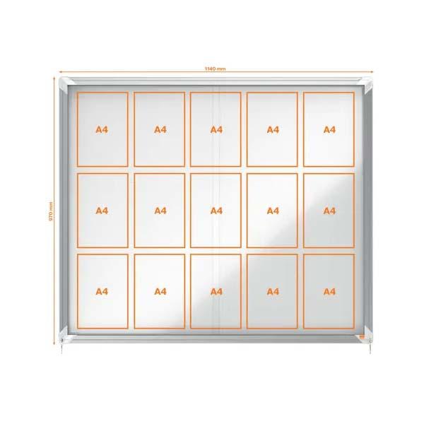 Ideal para fijar documentos de forma segura. Optimizada para varias hojas en formato A4. 1 puerta batiente de seguridad, con cristal de 4 mm y bisagras laterales, para medidas de hasta 71 x 97 cm. 2 puertas correderas, para medidas a partir de 92 x 67 cm.